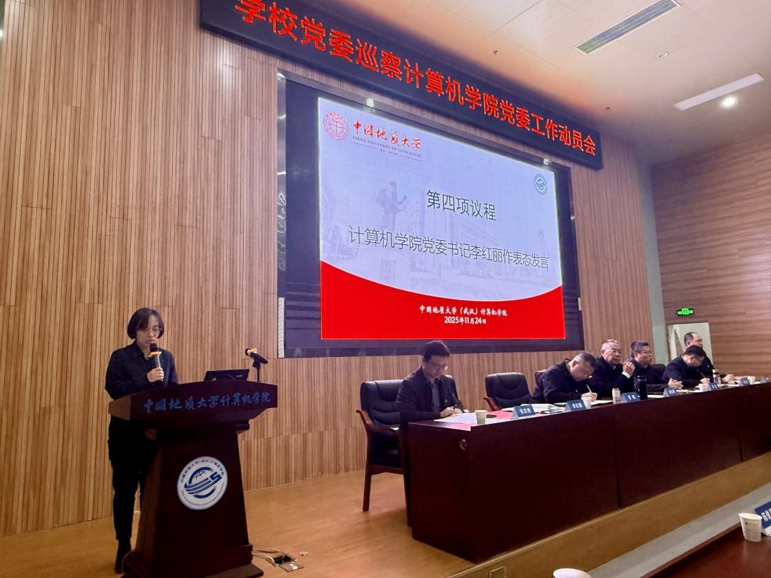 学院党委书记李红丽同志做表态发言。她从提高政治站位、全力支持配合、抓好巡察反馈问题的整改落实等三方面进行表态,并强调学院党委将以此次巡察为契机,进一步统一思想、提高认识,团结、凝聚、带领全院师生实现学院事业高质量发展,为教育强国建设地大实践贡献计科力量。