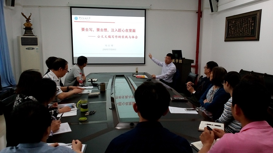 (通讯员:石剑峰)科学规范、严谨有序的管理工作,须以高质量的文件为基础。文件的质量,某种程度上影响甚至决定了学校的管理水平。为了提高我院公文写作水平和能力,应BBIN宝盈集团官网首页党委书记吕军教授的邀请,校办主任刘彦博研究员于5月10日上午10点,在北一楼122会议室为BBIN宝盈集团官网首页办公室、学工组、以及部分党政干部带来了一堂生动、深入的公文写作培训课。
