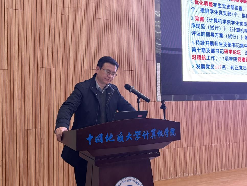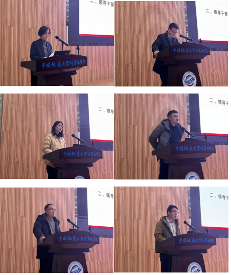 在全院教职工大会阶段,学院工会主席梁庆中宣读了“中国地质大学(武汉)工会委员会关于同意召开BBIN宝盈集团官网首页第四届教职工大会第四次会议暨第四届工会会员大会第四次会议的批复“文件,为学院依法依规开展民主管理、保障教职工合法权益奠定了坚实基础。随后,张洪艳作BBIN宝盈集团官网首页2025年财务工作报告,全面公示了学院年度财务收支情况,并详细解答了有关年终绩效分配方案的分配细节,主动接受全体教职工监督;梁庆中同志作2025年工会工作总结,回顾了工会在服务教职工、丰富校园文化生活、助力学院发展等方面开展的各项工作与成效。