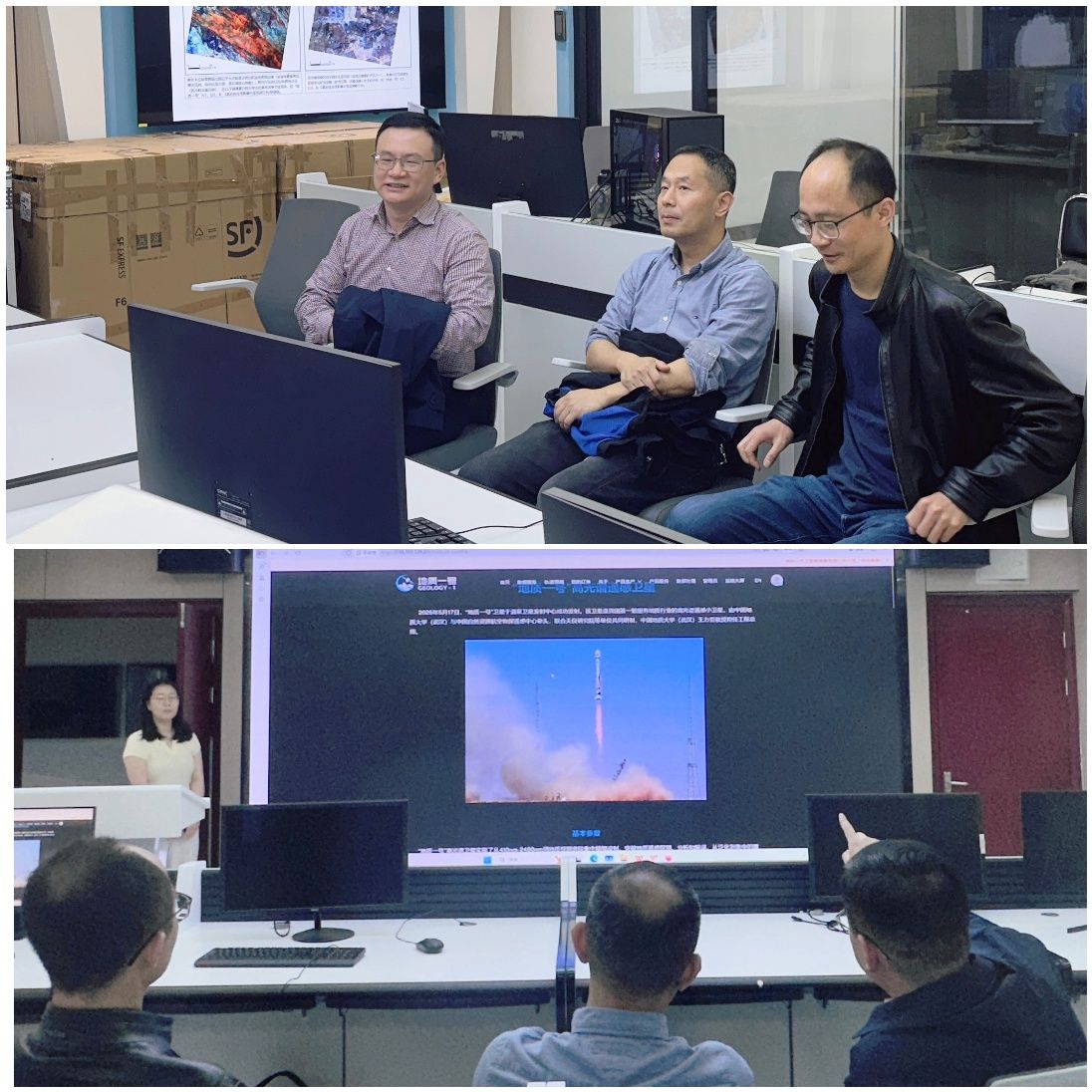 会后,在张院长的带领下,方伟院长一行来到BBIN宝盈集团官网首页数字地球实验室,参观了“地质一号”高光谱遥感卫星数据处理与服务系统。我院将计算机科学与地质科学巧妙融合的研究成果令方伟院长耳目一新,赞不绝口。