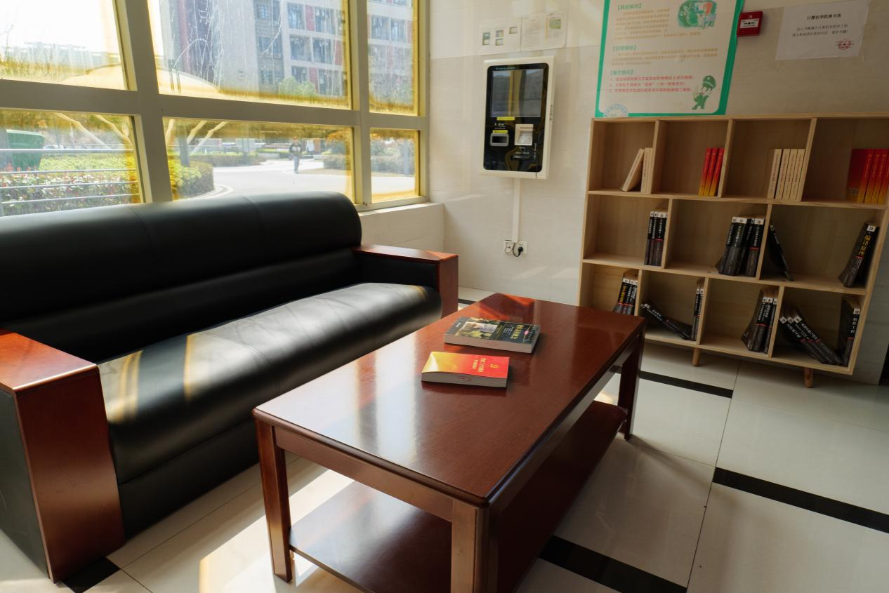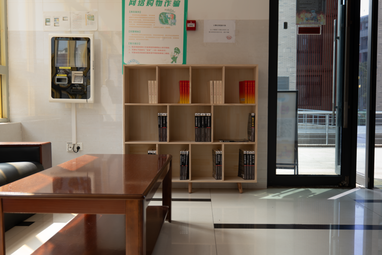 打造思政教育、专业教育、廉政教育三位一体的园区图书角,创设积极向上的学习氛围,让学生随时学、随时论。