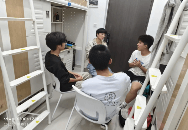 据悉,学院自2023年起为每间新生宿舍配备一位高年级学生党员,成立“新生之友”计划,高年级党员在思想引领、职业规划、学习生活全方位提供指导与答疑。本期“新生之友”活动覆盖58栋、51栋多间宿舍,党员们通过主题座谈、技能演示、资源分享等形式精准帮扶,搭建起温暖而坚实的朋辈交流平台,助力同学们找准前进方向。