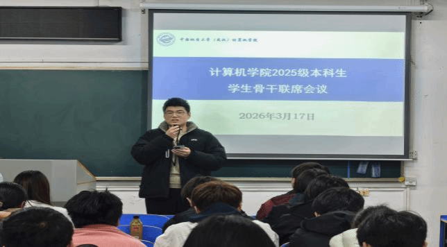 为搭建本科新生沟通桥梁,凝聚协作合力。2026年3月17日召开2025级本科生学生骨干培训会。2025级辅导员谭文博、兼职辅导员王超、2025级各班班长、团支书、学习委员、生活委员以及学生骨干成员参会,辅导员谭文博主持会议。