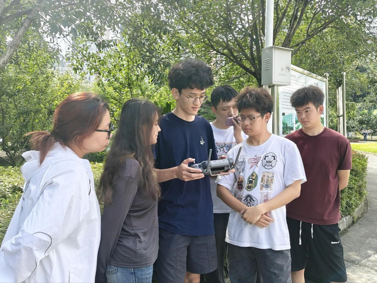 9 月 9 日是无人机飞行教学日,对于空间信息与数字技术专业的我们而言,这是将“地面观测”与“空中视角”结合的重要一课。早在教学前一日,各小组便选派了两名同学提前跟随老师“取经”。从无人机的部件拆解与组装,到遥控器的按键功能、起飞前的设备检查,再到基础飞行姿态的操控技巧,他们仔细记录每一个要点,反复练习悬停、升降等基础动作,直到能熟练应对简单的飞行场景——这份提前 “备课” 的认真,为次日的小组教学打下了坚实基础。