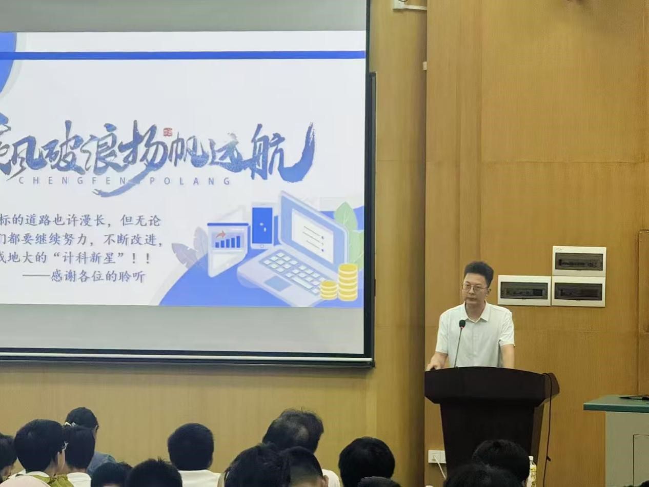 宣讲伊始,BBIN宝盈集团官网首页团委书记、双创专员王太茂老师结合专业特点为新生介绍了学院双创工作体系,并阐述了计科学子在数字时代的应为与可为。他希望以此次讲座为契机,能为广大同学种下一颗“种子”、指明一个方向、共创一个未来,鼓励同学们从大一开始参与科创活动,在实践中淬炼青春。