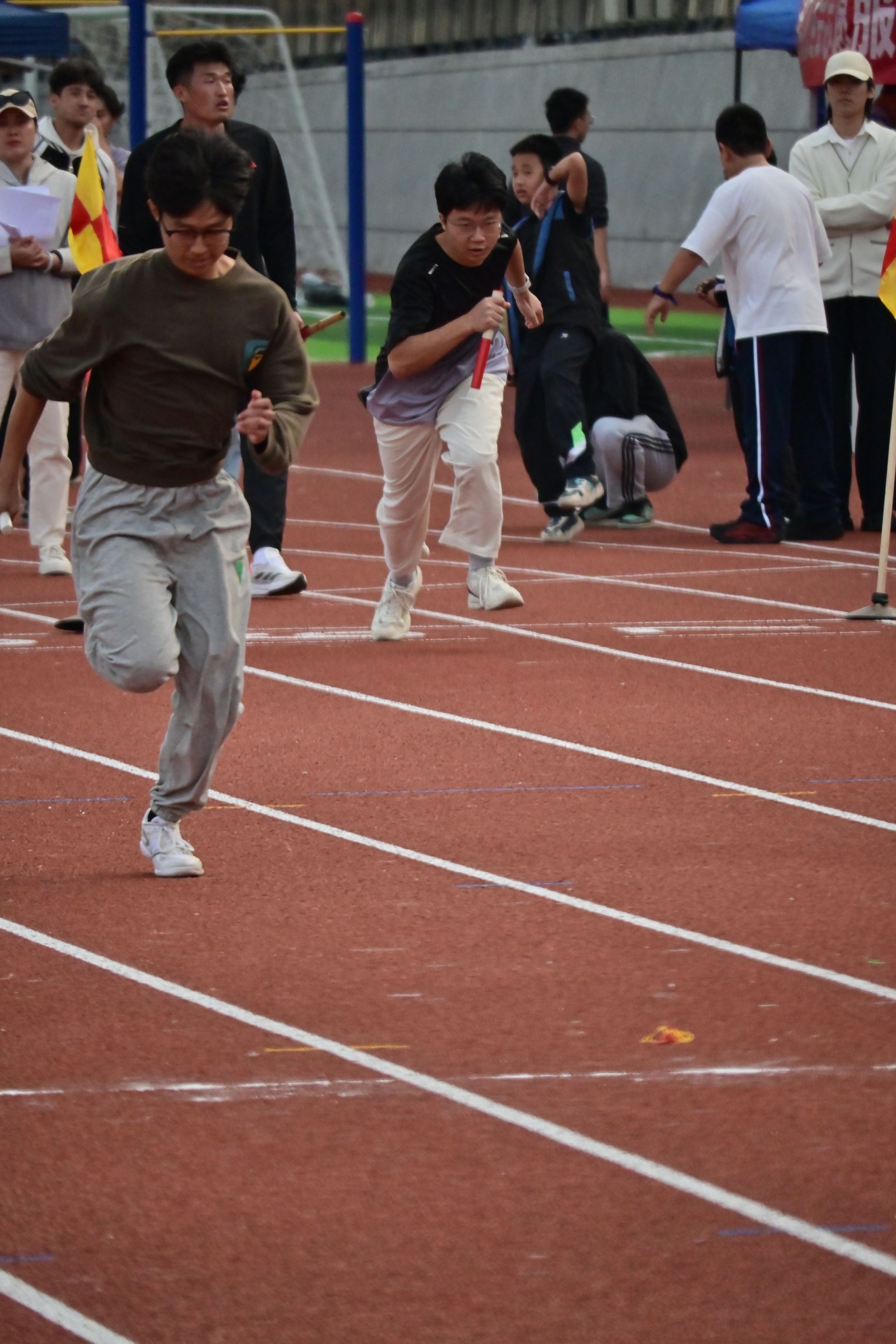 女子4×100米接力赛中,阿依则巴、张微、张佳乐、杨珺四位女生步伐坚定有力;女子4×400米接力跑中,田礼阳、张欣越、张璐、刘嘉仪在漫长的赛程中相互鼓励,她们用飒爽英姿重新定义了速度,将青春的活力尽情挥洒在赛场的每个角落。男子4×100米赛道上,秦年鸿、胡家悦、么顺杰、林锐宇如四支离弦之箭,在弯道与直道间划出流畅轨迹;男子4×400米接力赛中,沈子翔、林锐宇、姜宇、赵硕文四位选手从起跑便展现出沉稳的节奏控制,最终用顽强的意志共同完成了这场团队征程。最终学院女子4×400米、男子4×100米、男子4×400米均获得团体第六名的成绩。