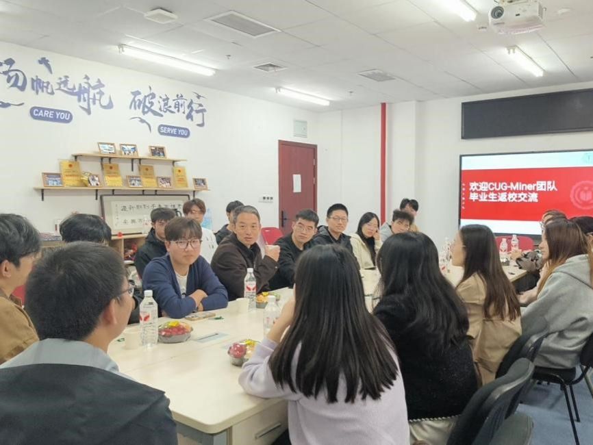 此次 CUG-Miner 毕业生返校交流活动的成功举办,不仅为在校研究生提供了宝贵的学习与借鉴机会,也进一步加强了学院与毕业生之间的联系,为学院后续搭建毕业生与在校生的沟通桥梁奠定了基础。从育人机制层面来看,本次活动的成功举办,生动彰显了学校通过“研究生导学团队微项目”在深化导学团队建设,促进师生交流,构建和谐导学关系的突出成效。未来,学校将继续以微项目为抓手,推动更多导学团队打造特色活动,助力研究生培养质量的提升。