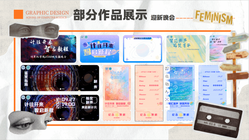全媒体中心平面设计组专注视觉创作,累计完成海报、活动门票、宣传展板等设计作品94件,积极引入新软件与AI绘图技术,优化创作流程、提升作品质感,以优质视觉设计赋能学院宣传,打造兼具美观性与实用性的宣传载体。